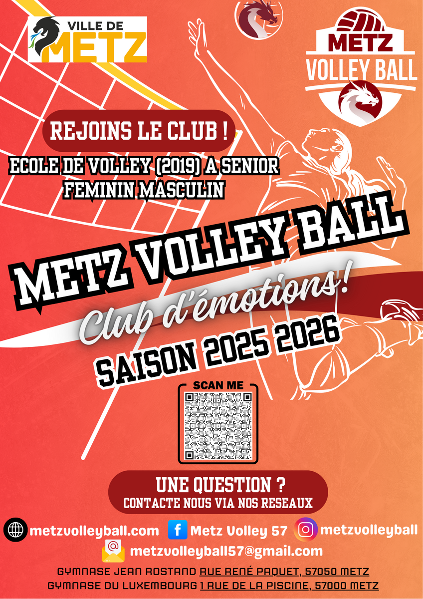 Nous sommes heureux de vous accueillir sur le nouveau site officiel de notre club "METZ VOLLEY BALL".